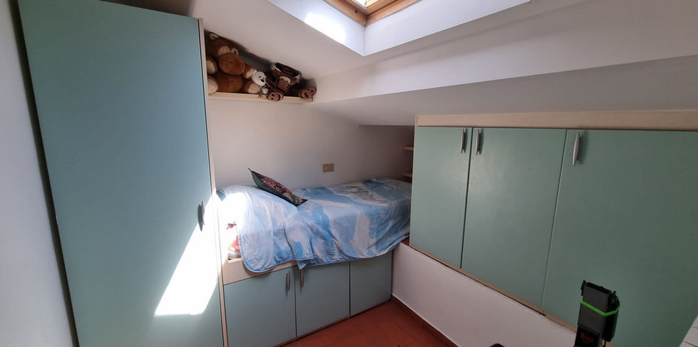 Si distribuisce internamente su due livelli ed è così composta: al piano inferiore troviamo la zona giorno composta da cucina abitabile, soggiorno e bagno completo con areazione forzata. La zona notte si trova al piano superiore e presenta una camera matrimoniale ed una seconda camerina/studio entrambe con finestra a tetto.