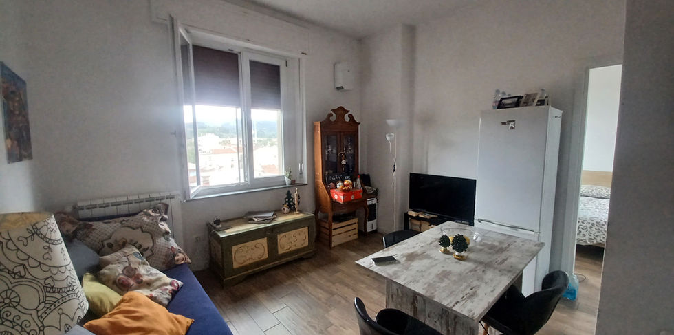 L’abitazione si apre su un’ampia zona giorno con angolo cottura a vista, prosegue poi con una camera matrimoniale e un bagno finestrato completo.